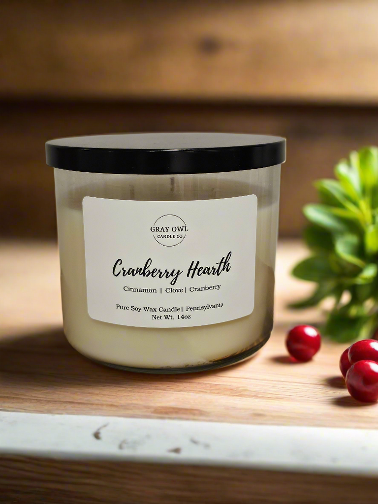 Experience the comforting glow of the Cranberry Hearth Large Soy Candle with three wicks for a balanced and steady burn. This candle combines the rich, tart scent of cranberry with invigorating cloves and a blend of warm spices, creating a cozy and inviting atmosphere.