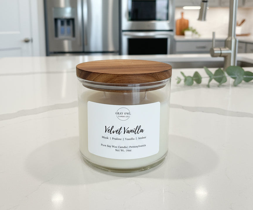 Elegant and refined, Velvet Vanilla reimagines a timeless favorite with a touch of luxury. Fresh linen opens this sophisticated scent, while notes of amaretto, jasmine, and soft smoke add depth and allure. A warm, comforting base of musk, praline, vanilla, and amber wraps it all together for a smooth, velvety finish that feels both classic and indulgent. Perfect scent to create a cozy space.