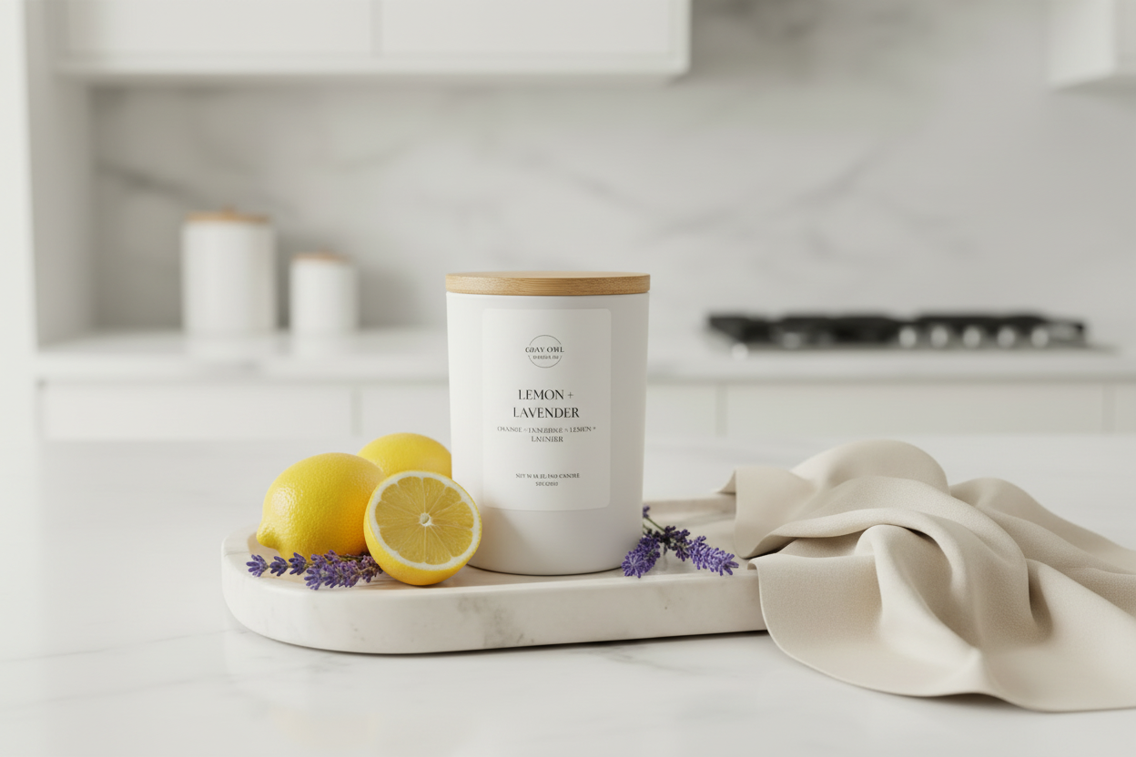 A bright, citrus-forward blend where sparkling lemon meets soft, calming lavender. Light touches of orange and delicate florals add dimension, while a whisper of vanilla and clove creates a smooth finish.