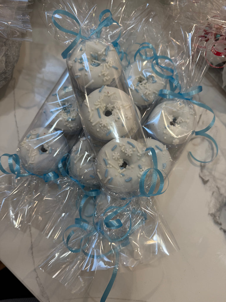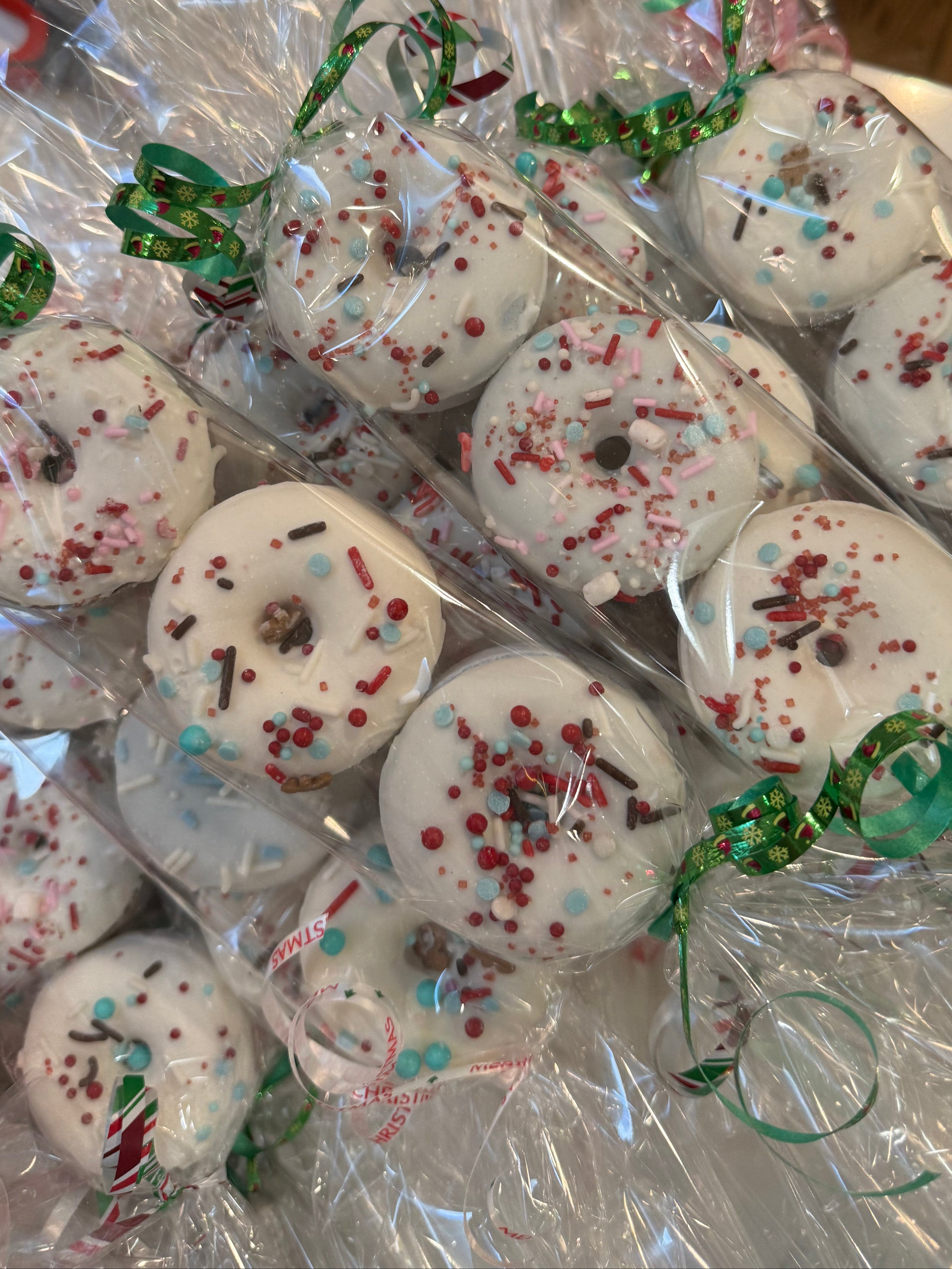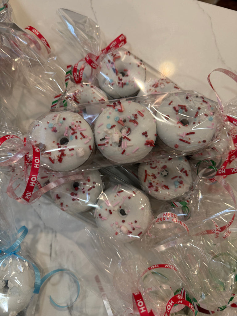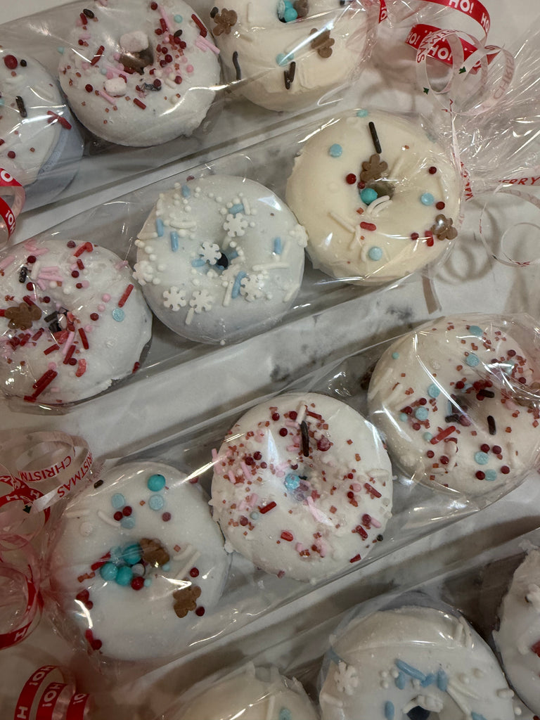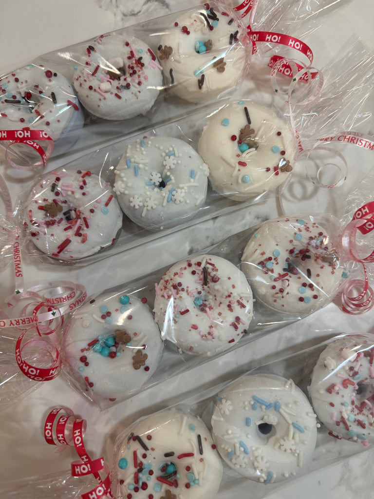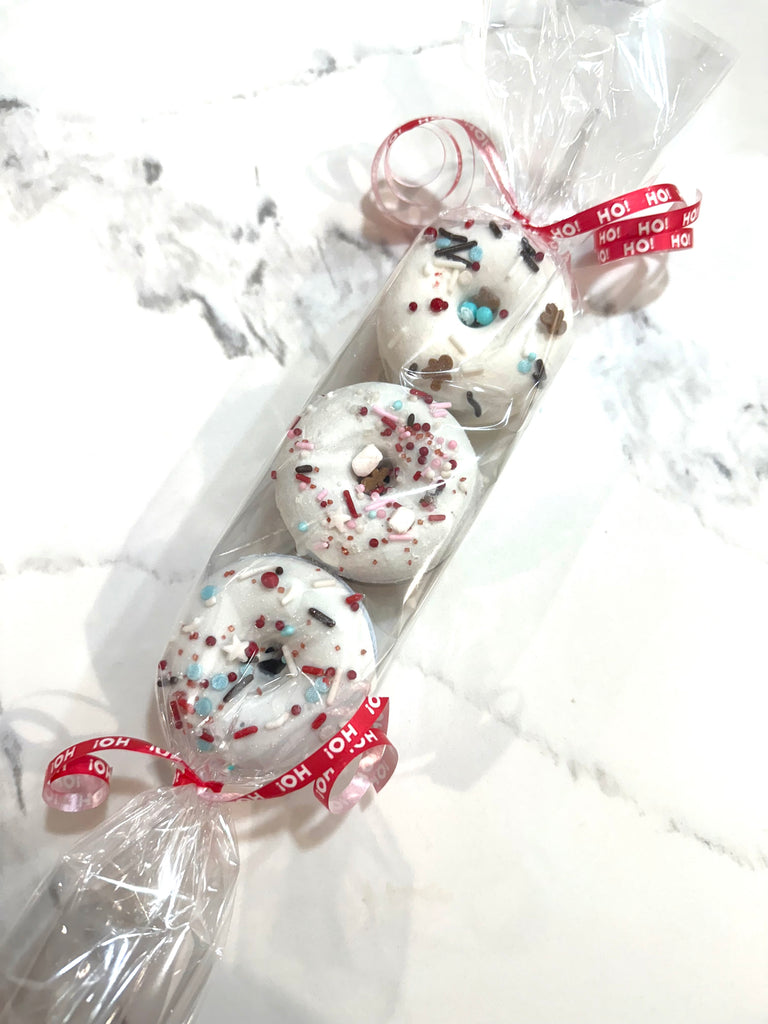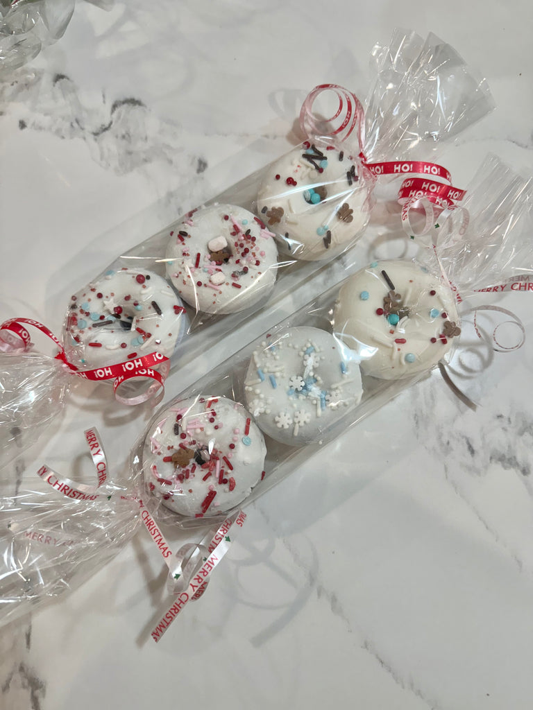 Get into the holiday spirit with our festive Mini Bath Bomb Donut Trio, a delightful gift set that turns any bath into a sweet seasonal treat! Each adorable donut-shaped bath bomb is handcrafted and topped with sparkling Christmas sprinkles for a touch of holiday cheer.