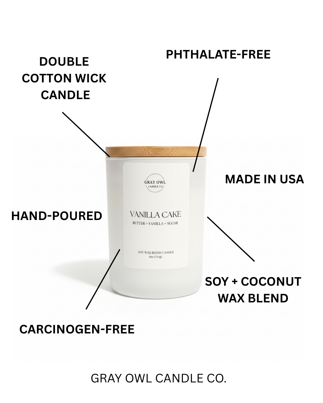 - Wax: Soy and Coconut Wax Blend | Vegan, Non-GMO, Kosher | Made in USA